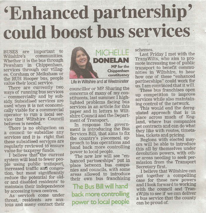 Gazetter and Herald - Update from Michelle Donelan, MP for Chippenham [here]